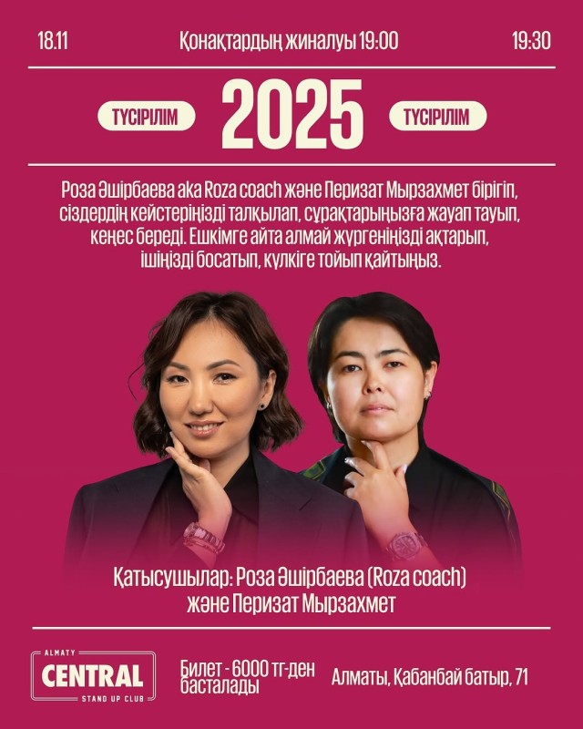 Роза Әширбаева (Roza coach) мен Перизат Мырзахмет 18 қараша, сейсенбі күні, сағат 19:30 сахнаға шығады!