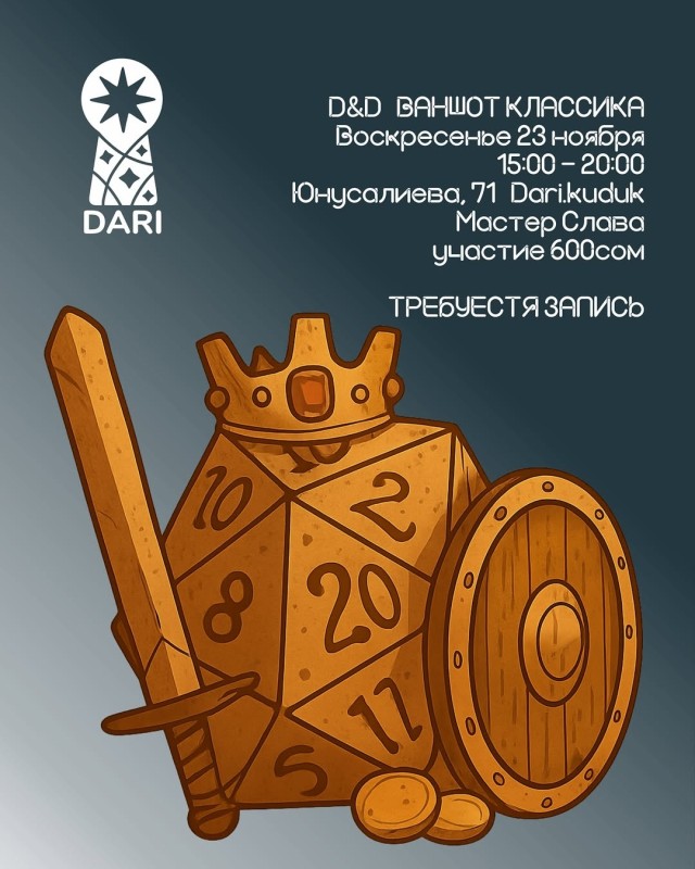 Вечер настольных игр: ДнД ваншот классика в DARI | Бишкек 23.11.2025