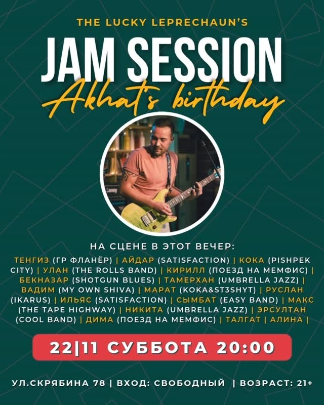 По случаю дня рождения Ахата, делаем большой музыкальный джем с друзьями музыкантами и резидентами бара "The Lucky Leprechaun" 🥳