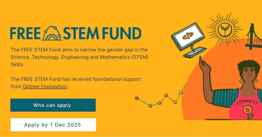 The FREE STEM Fund 2025, supported by the Optiver Foundation, is now accepting applications for projects that promote gender equality and inclusion in STEM (Science, Technology, Engineering, and Mathematics).