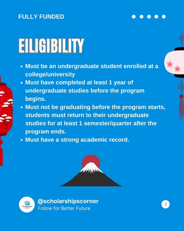 Преимущества: Бесплатное проживание, авиабилет эконом-классом до Токио (или поезд для местных студентов), стипендия в размере 280 000 иен, доступ в кампус UTokyo, японские культурные мероприятия, семинары и специальные сессии, короткие поездки и экскурсии.