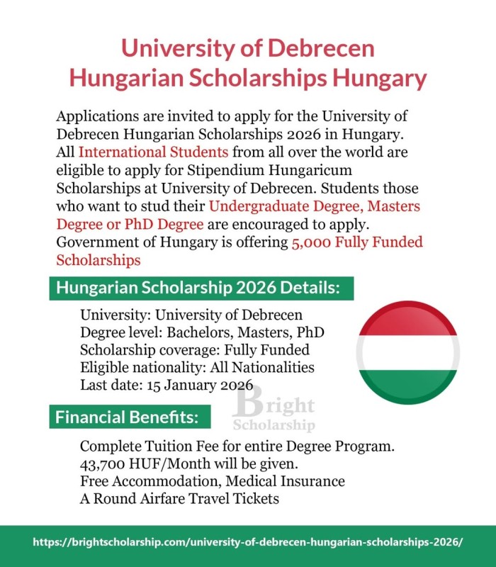 University of Debrecen Hungarian Scholarships 2026 in Hungary (Fully Funded)