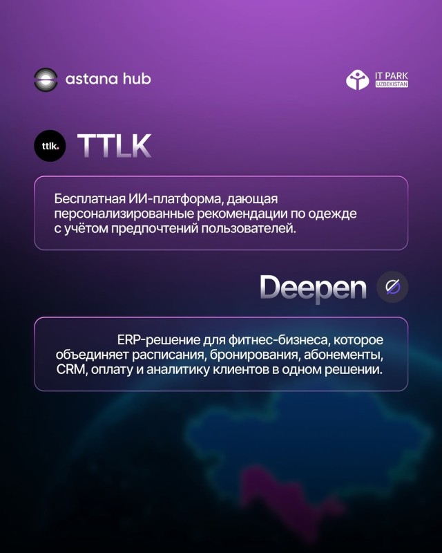 🚀 Стартапы-участники: Paylov, Stanbase, Tuzuk AI, Rezvo, Renta, Aigul, Gorent, ZoomSelling, Ttlk, Deepen