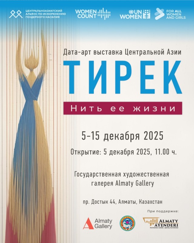 Дорогие друзья и подруги, приглашаем вас на выставку «Тирек: Нить её жизни», которая пройдет в Алматы с 5 по 15 декабря 2025 года.