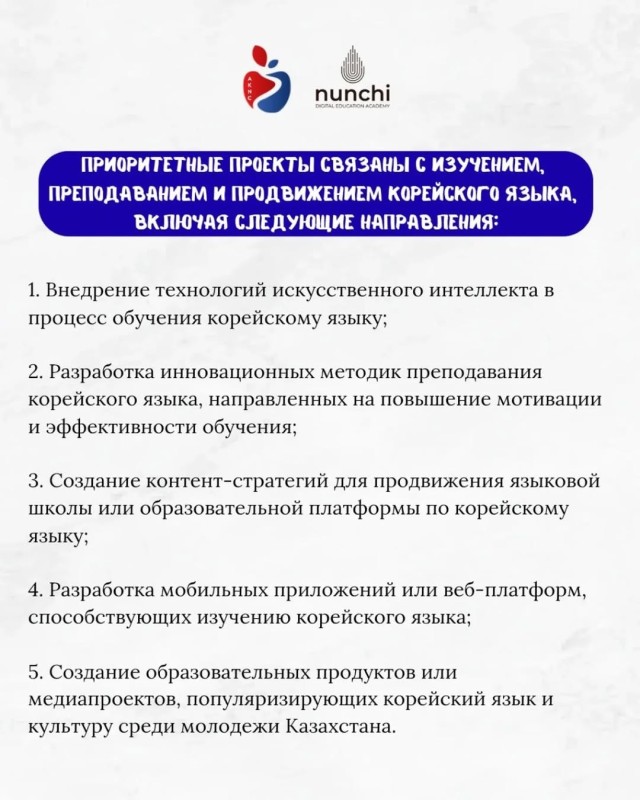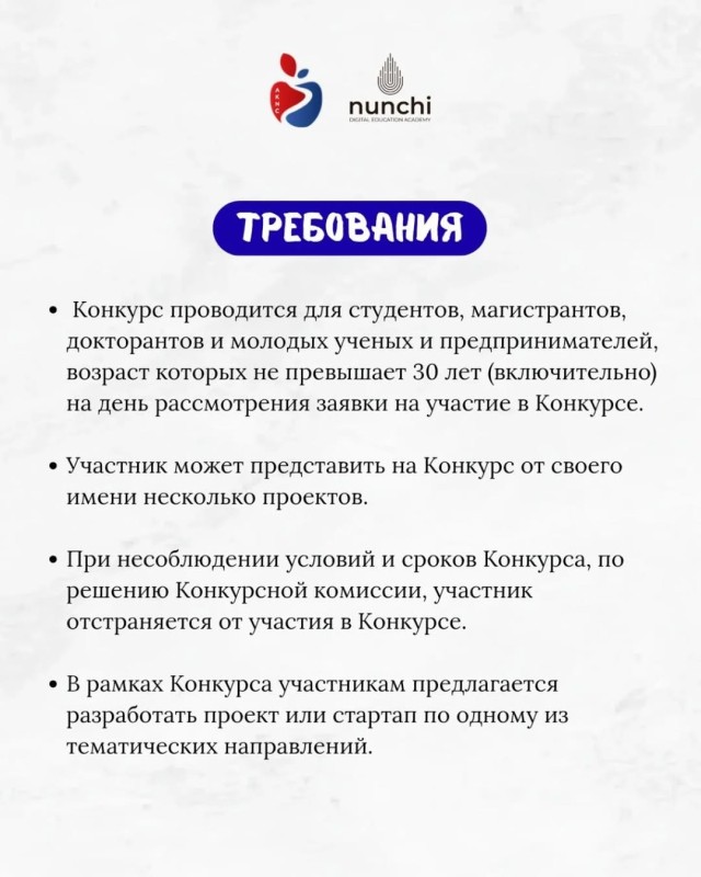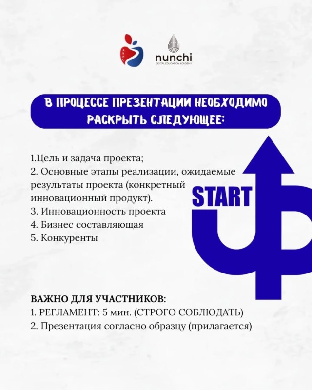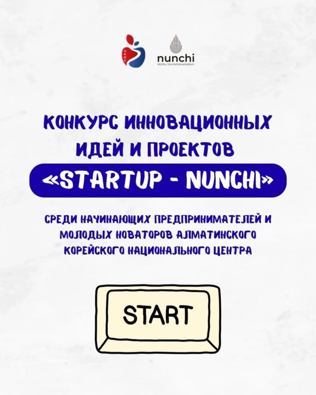 Nunchi digital academy при поддержке АКНЦ объявляет конкурс инновационных идей и проектов "STARTUP NUNCHI". Конкурс пройдет среди начинающих предпринимателей и молодых новаторов!