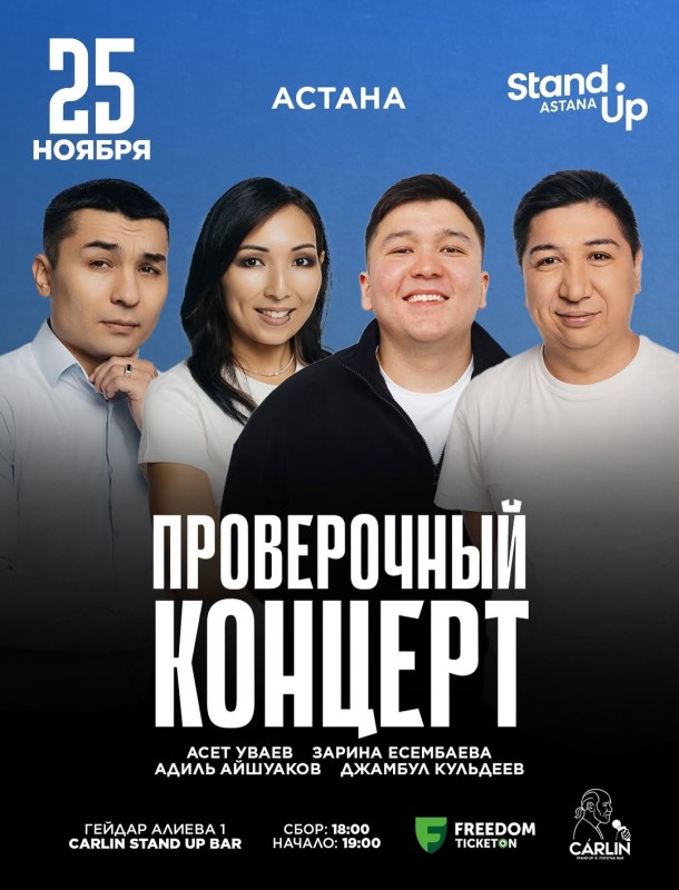Оффлайн: Казахстан, г. Астана, Carlin Stand Up Bar | Гейдара Алиева, 1