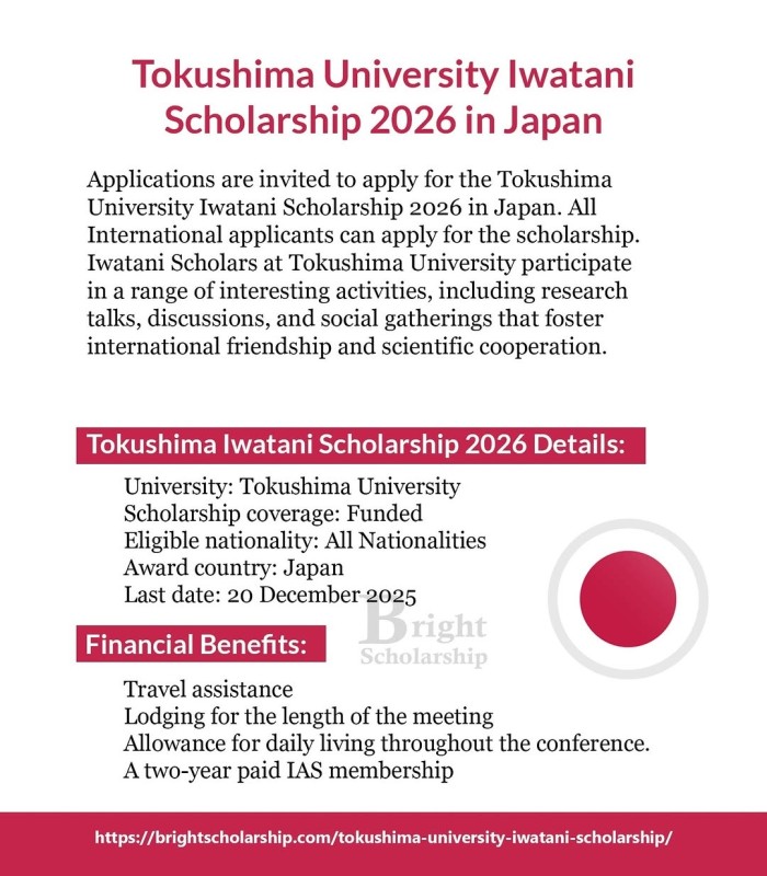 Tokushima University Iwatani Scholarship 2026 in Japan (Funded)
