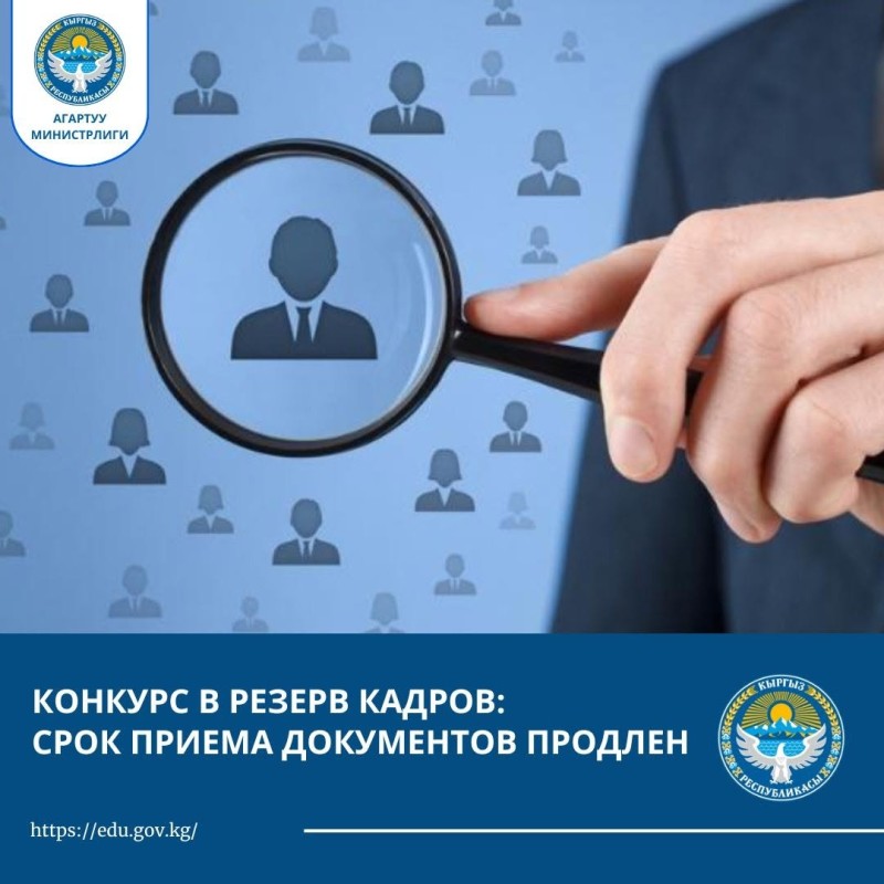 Министерство образования и науки КР объявляет о продлении срока подачи документов на конкурс для зачисления в кадровый резерв до 4 декабря 2025 года.