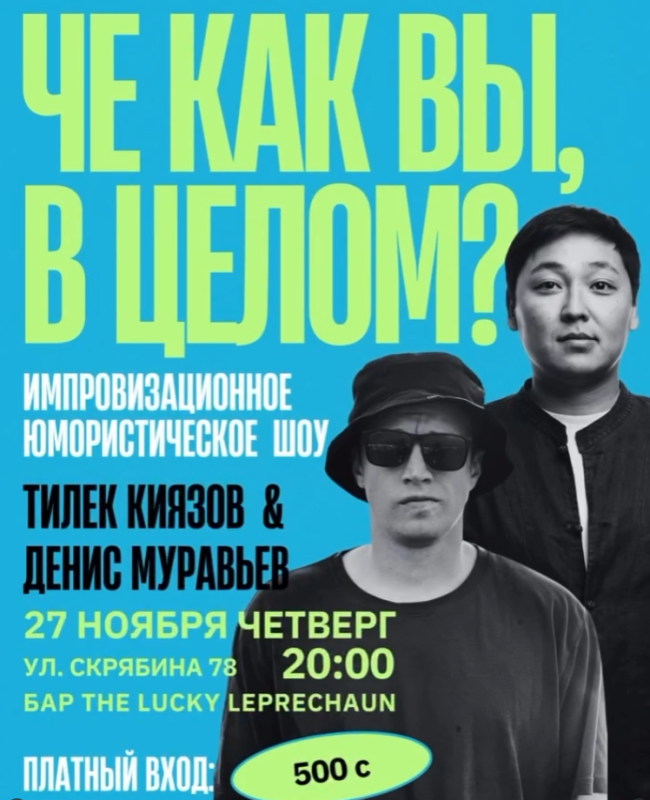 В этот четверг у нас в гостях @kiyazov_tilek и @muravyev_ в юмористической форме болтают с вами, шутят о жизни, о друзьях и соседях, о соц сетях, об отношениях, и о многом другом. Приходите послушать, весело провести время и пообщаться 💚