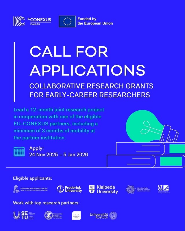 EU-CONEXUS Enables объявил о запуске нового конкурса грантов на совместные исследования. Мы обращаемся ко всем начинающим исследователям: это ваш шанс продемонстрировать свою работу, создать международные и междисциплинарные команды и получить финансирование!