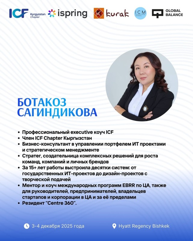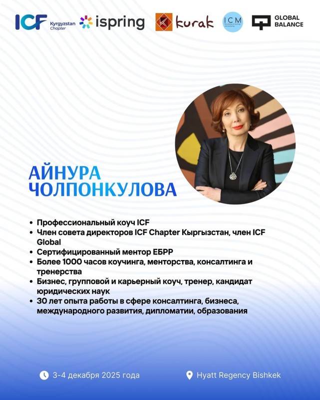 👉 Забрать свою сессию вы сможете на Международной Конференции Коучинга 2025, которая пройдет 3 декабря в отеле Hyatt Regency Bishkek!