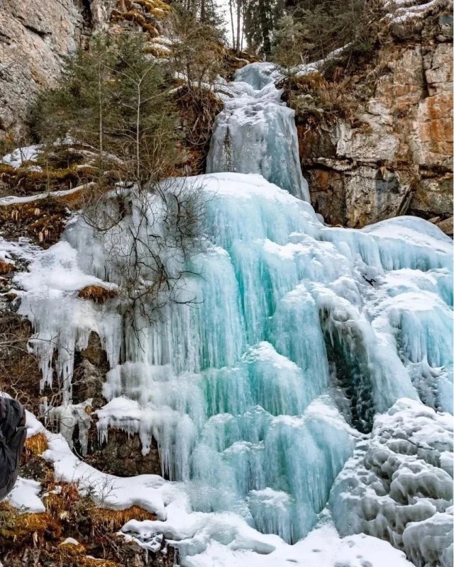 2️⃣ Невероятный красивый замерзший водопад в скале,