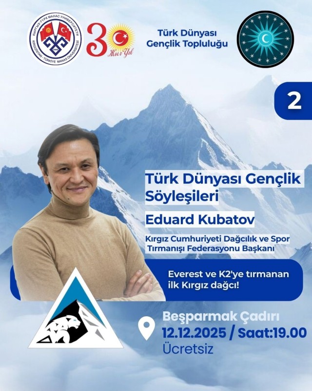🎙️ Альпинизм маданияты, ийгилик жолу жана Түрк Дүйнөсү жаштарына дем бере турган маектешүү сени күтөт.