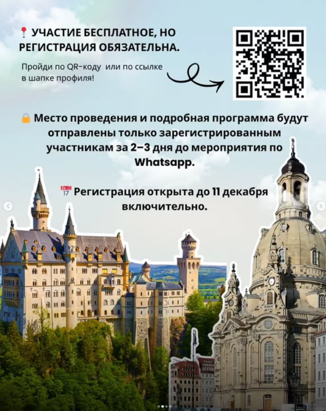 ❗️ Место и программа будут отправлены за 2–3 дня до встречи на указанный вами номер WhatsApp.