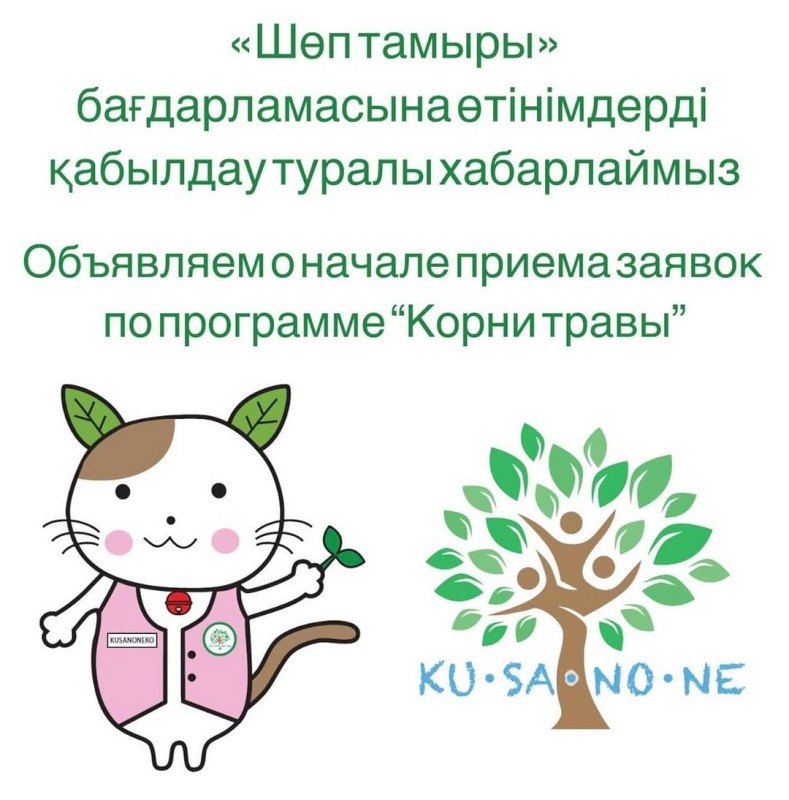 2026 жылдың бірінші жартыжылдығының “Шөп тамыры” (KUSANONE) адам қауіпсіздігін қамтамасыз ету бойынша жобаларға қайтарымсыз көмек көрсету бағдарламасына өтінім қабылдау басталғанын жариялаймыз.