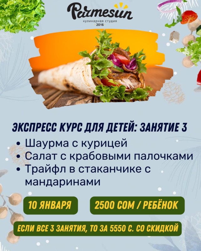 3 занятия, стоимость составляет всего 5550 сом — выгоднее и удобнее!