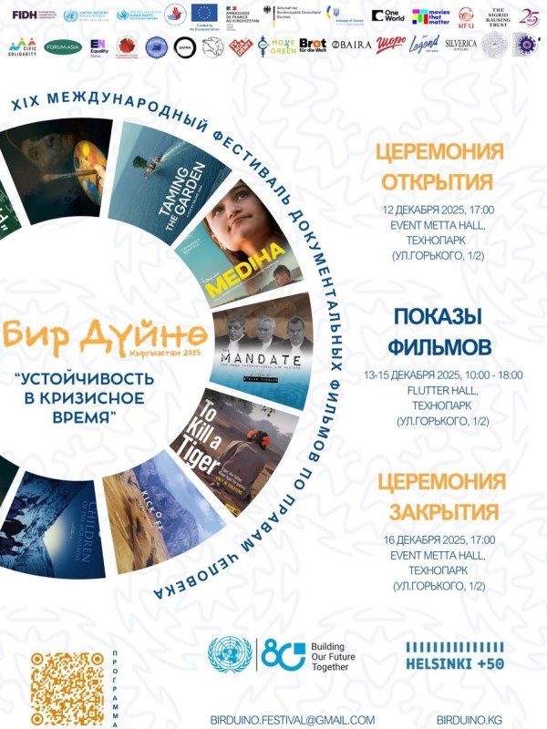 12-16.12.2025-жылы, Бишкекте XIX Эл аралык адам укуктары жөнүндө документалдык кино фестивалы өтөт – «Кризис учурундагы туруктуулук».