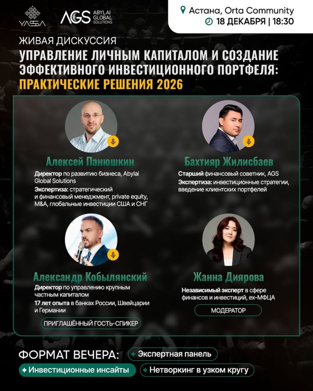 Модератор вечера — Жанна Диярова, независимый эксперт в сфере финансов и инвестиций, ex-МФЦА.