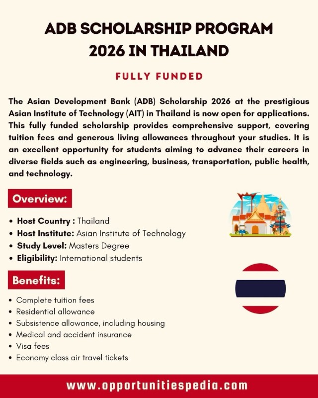ADB–JSP Scholarship at AIT 2026 | Fully Funded | Thailand 🇹🇭