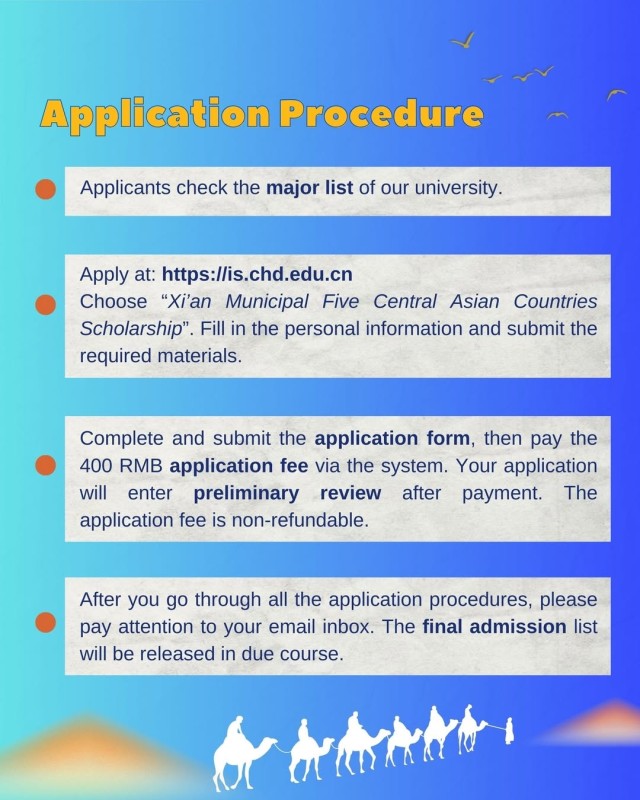 Подайте заявку на получение стипендии в Сиане “𝑭𝒊𝒗𝒆 𝑪𝒆𝒏𝒕𝒓𝒂𝒍 𝑨𝒔𝒊𝒂𝒏 𝑪𝒐𝒖𝒏𝒕𝒓𝒊𝒆𝒔” Международная студенческая стипендия в Университете Чанъань (набор в 2026 году), финансируемая муниципальным правительством Сианя для поддержки студентов из Центральной Азии, которые знают Китай, обладают глобальным видением и сильными профессиональными навыками. 🎓