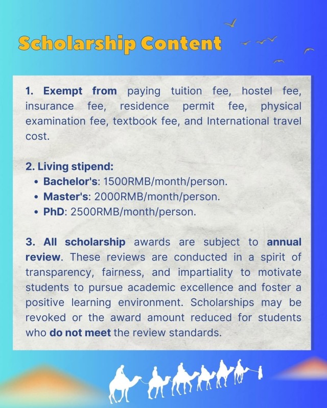 【Scholarship coverage】full tuition and on-campus accommodation, plus insurance, physical exam, and residence permit fees, with a monthly stipend 💰