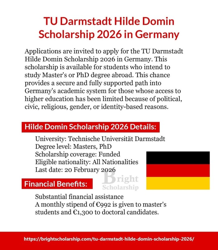 TU Darmstadt Hilde Domin Scholarship 2026 in Germany (Funded)