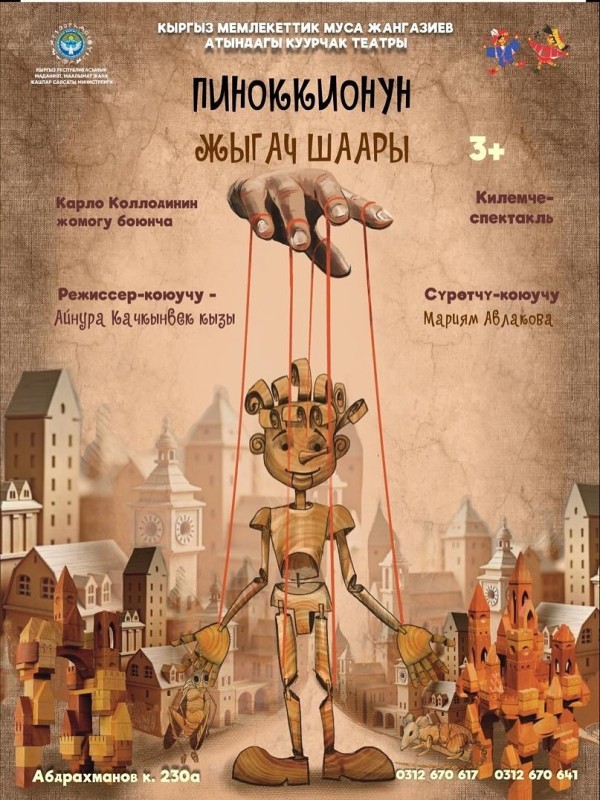 Бул Карло Коллодинин «Жыгач куурчактын окуясы» жомогунун негизинде сахналаштырылган интерактивдүү коюлум 🤹♂️. Башкы каарман Пиноккио менен бирге балдар жыгач оюнчуктардан шаар курушат 🧩🏠. Бул жомокто көрүүчүлөр спектаклдин катышуучуларына айланат 👧🧒. Оюн учурунда курулган ар бир жаңы шаар Пиноккионун окуялары сыяктуу уникалдуу жана кызыктуу болот 🌟