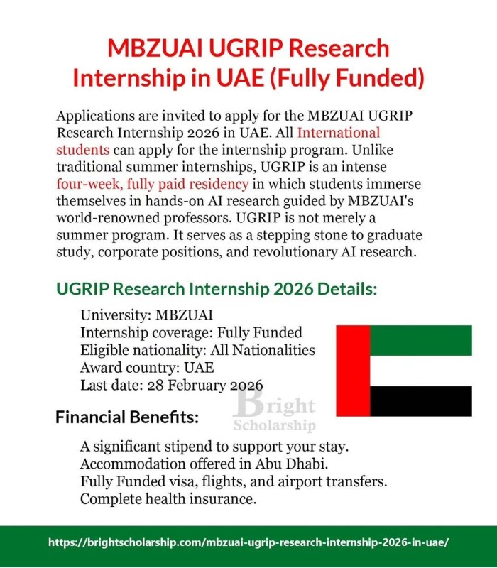 MBZUAI UGRIP Research Internship 2026 in UAE (Fully Funded)