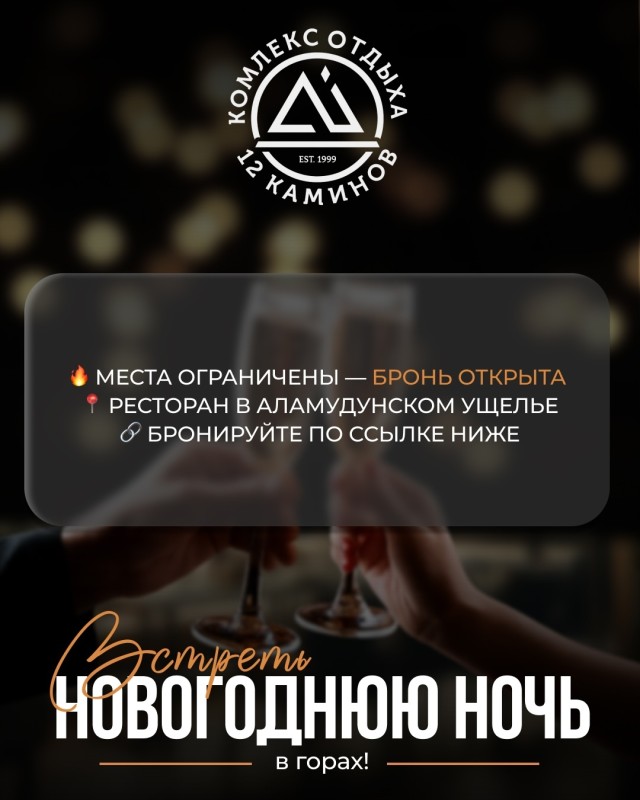 Встреть новогоднюю ночь в ресторане в горах - вдали от городской суеты, среди огней, снега и настоящей праздничной атмосферы.