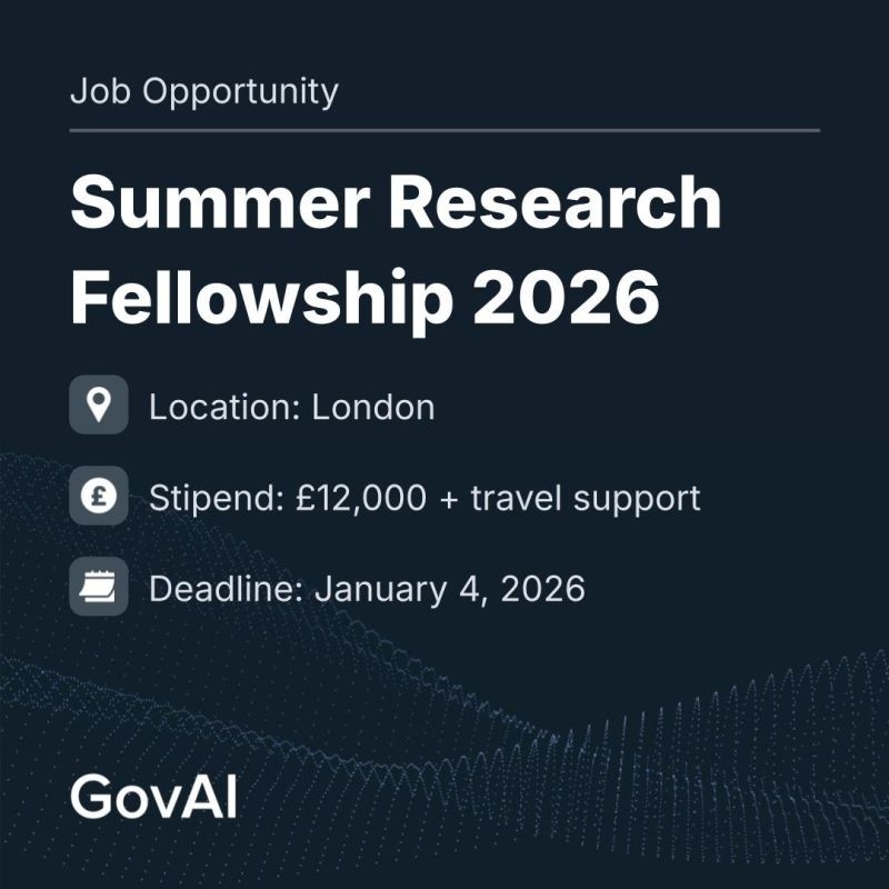Открыт прием заявок на летнюю стипендиальную программу GovAI 2026 (исследовательское направление). Это ваш шанс провести независимое исследование, получить наставничество от ведущих экспертов и присоединиться к глобальной сети, формирующей ответственное будущее передового ИИ.