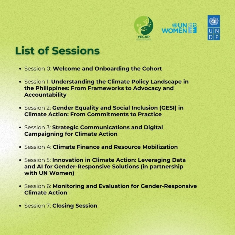 Стипендия Shakers Philippines по вопросам климата и гендерного равенства — это 8-недельная программа развития лидерских качеств и наращивания потенциала, которая поддерживает молодых лидеров в области климата, помогая им воплощать идеи в жизнь, уделяя первостепенное внимание гендерным вопросам, инклюзивности и справедливости в решениях климатических проблем.