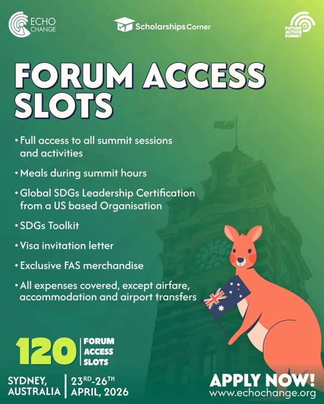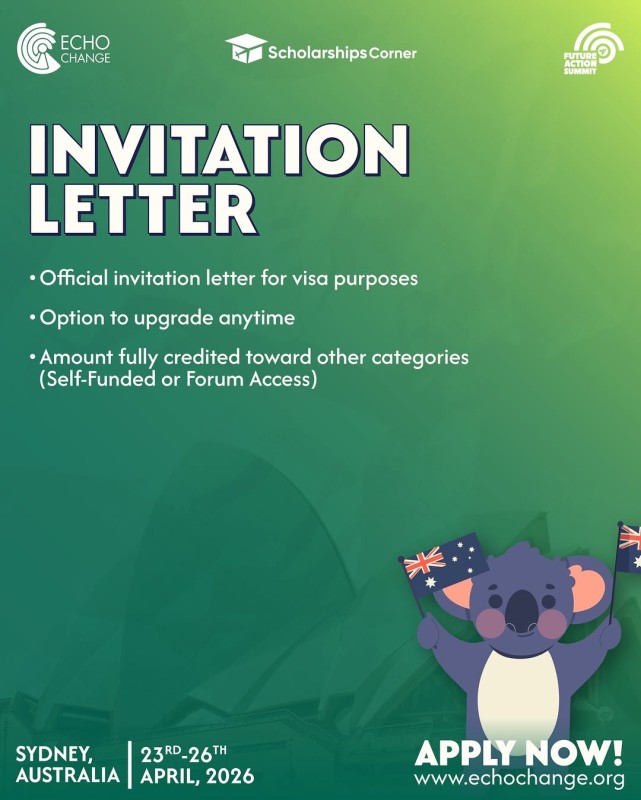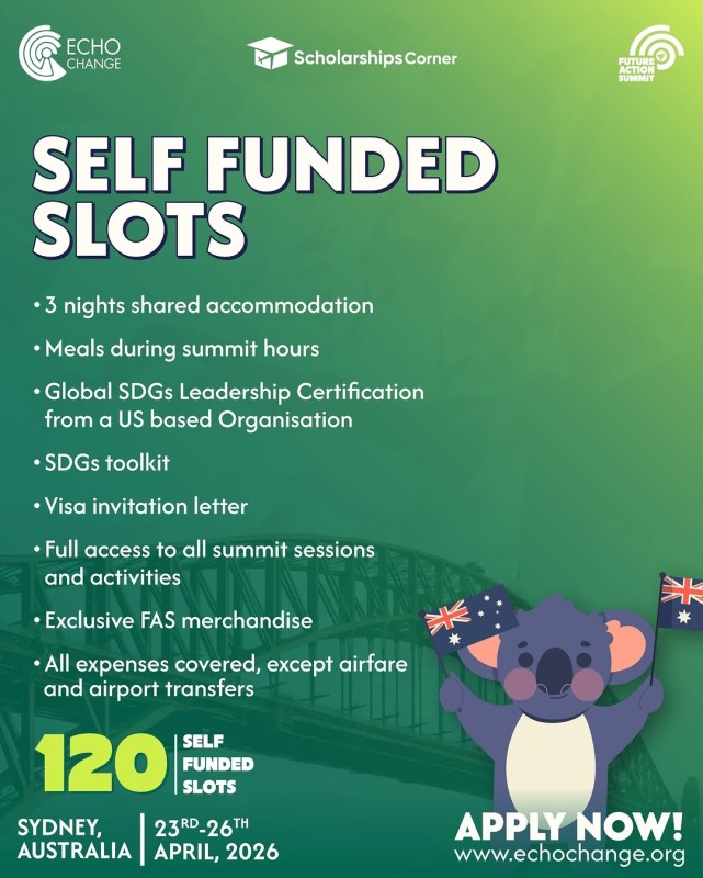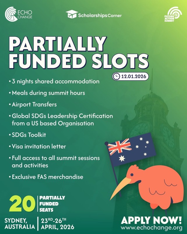 Fully Funded: Round-trip international airfare, 3 nights shared accommodation, meals during summit hours, visa invitation letter, leadership certificate, and full summit access.