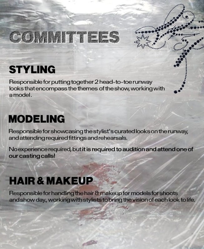 Join TFS’s Annual Spring Fashion Show in one of the many committees responsible for putting the show together. Whether you’re interested in modeling, styling, hair & makeup, or event planning, there is a spot for you ✨