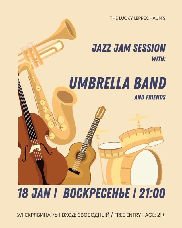 По традиции, в воскресенье 18 января в 21:00 у нас джазовый джем сешн при участии великолепных @umbrella_band_kg и друзей! 🎷🎺🎹