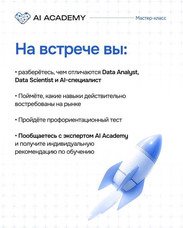 • пообщаетесь с экспертом AI Academy и получите персональную рекомендацию по обучению