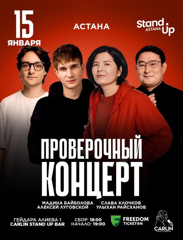 Оффлайн: Казахстан, г. Астана, Carlin Stand Up Bar | Гейдара Алиева, 1