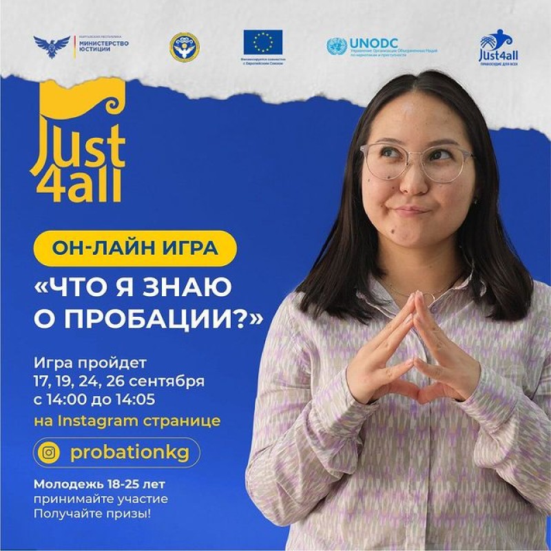 ☝️Here’s your chance to dive into the world of probation through a fun and interactive online game - «What do I know about probation?» brought to you by the @probationkg under the Ministry of Justice and the @euinkyrgyzstan & United Nations Office on Drugs and Crime co-funded project #Just4All.