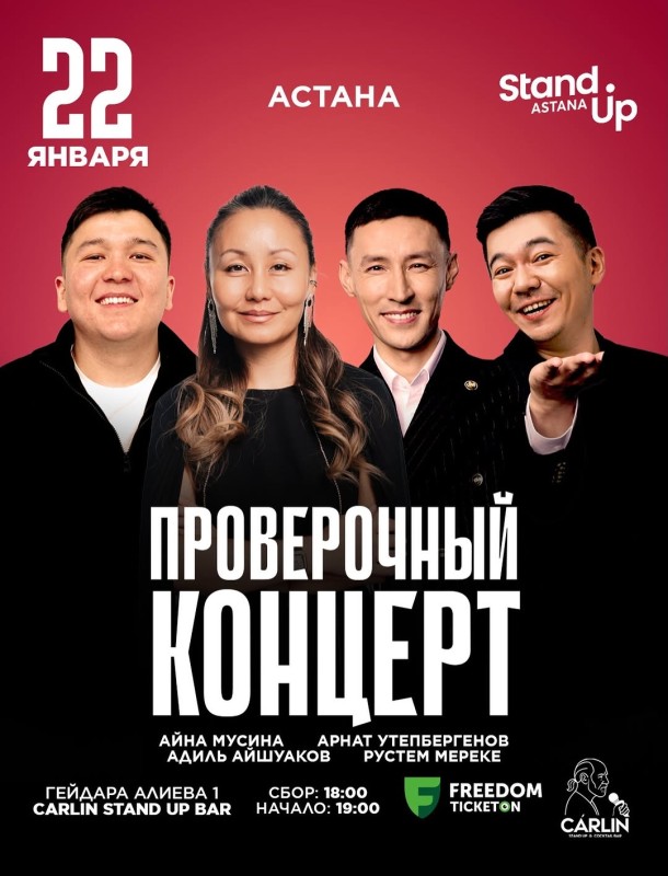 Оффлайн: Казахстан, г. Астана, Carlin Stand Up Bar | Гейдара Алиева, 1