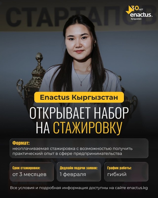 enactus.kg.📩 Резюме необходимо отправить на электронную почту: enactskyrgyzstan@gmail.com