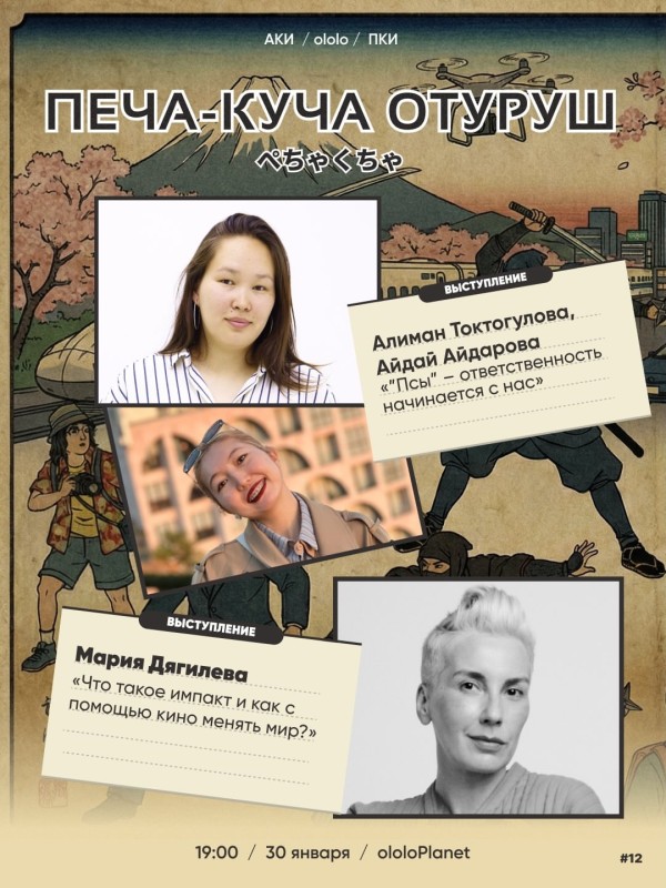 🎥 Алиман Токтогулова @toktogulova_aliman — режиссёр и продюсер доккино, и 🌱 Айдай Айдарова @aidai_nomad — импакт-продюсер и активист. Поговорят о фильме «Псы» и личной ответственности.