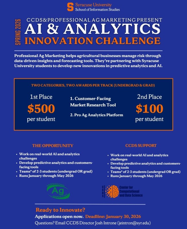 Professional Ag Marketing helps agricultural businesses manage risk through data-driven insights and forecasting tools. They’re partnering with Syracuse University students to develop new innovations in predictive analytics and AI.