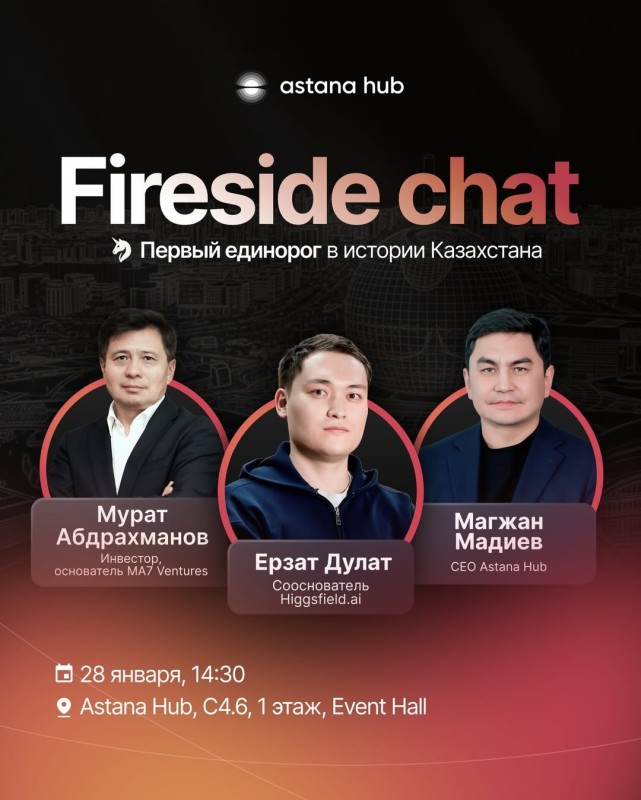🎙 Кездесуді Astana Hub бас директоры Мағжан Мадиев жүргізеді.
