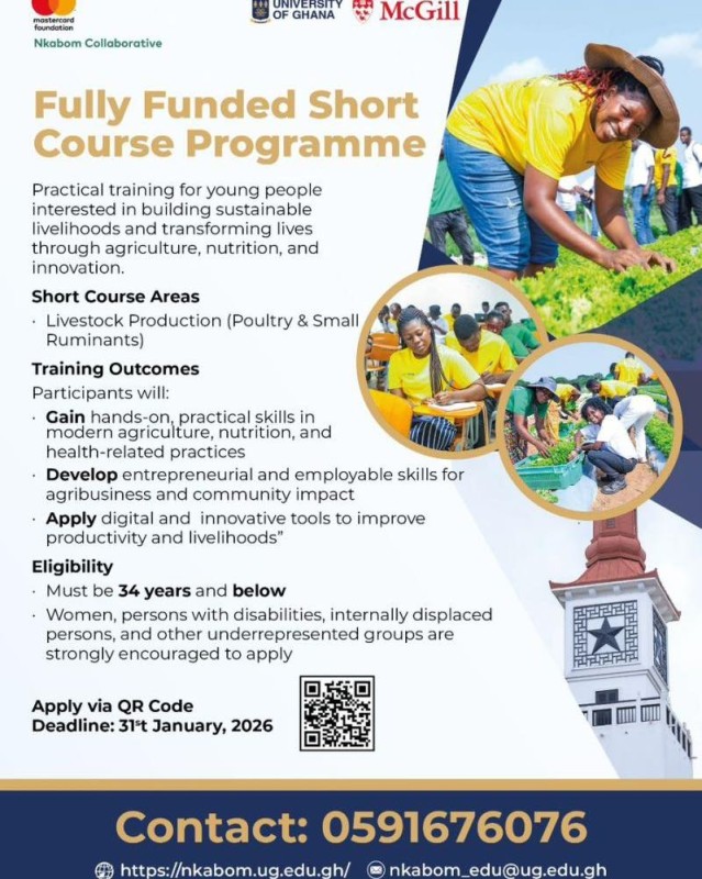 Are you 34 years or younger and passionate about agriculture, nutrition, and innovation? This fully funded short courseoffers hands-on training in poultry and small ruminant production, empowering young people to build sustainable livelihoods and develop entrepreneurial skills.