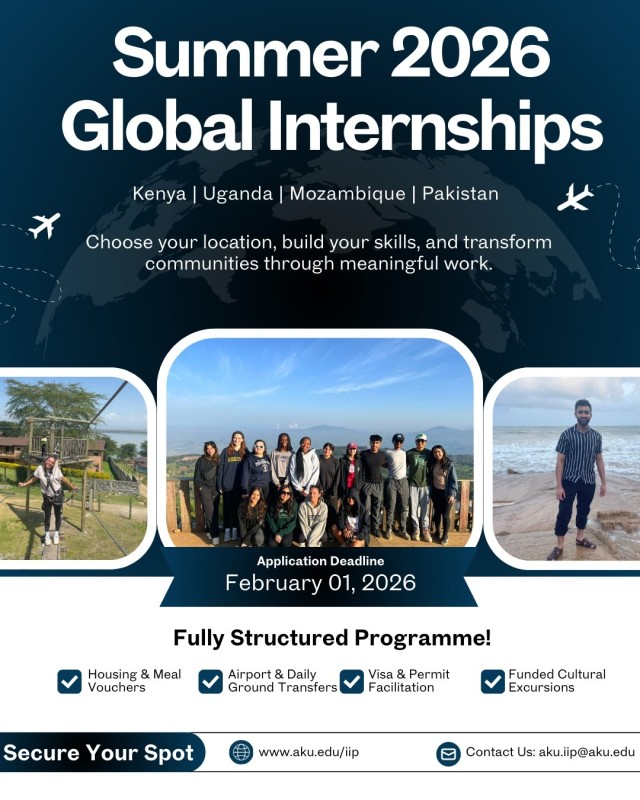 The experience: Minimum of 3 months of hands-on work in research, education, healthcare, communications, and more. Real projects with real impact across the Aga Khan Development Network.