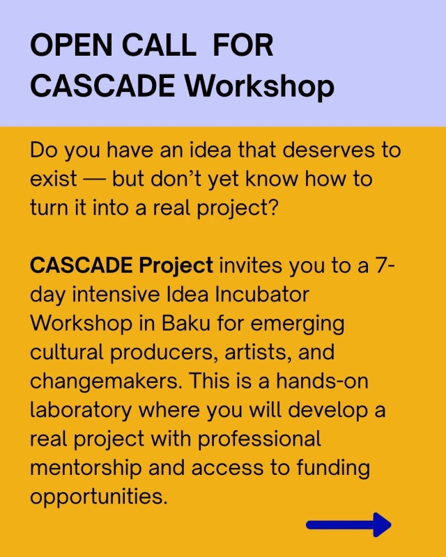 CASCADE Project invites you to apply for a 7-day intensive Idea Incubator Workshop in Baku, designed for emerging cultural producers, artists, and changemakers who want to move from inspiration to implementation.