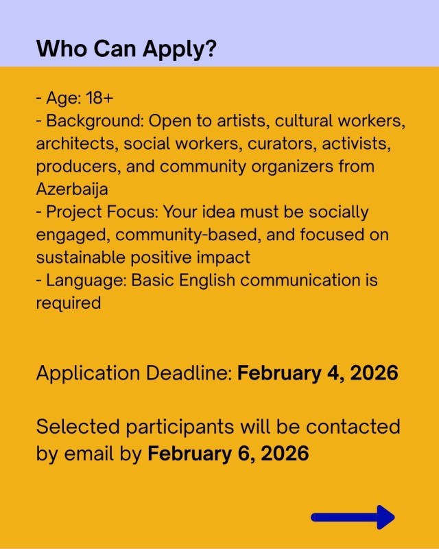 - Background: Open to artists, cultural workers, architects, social workers, curators, activists, producers, and community organizers from Azerbaijan