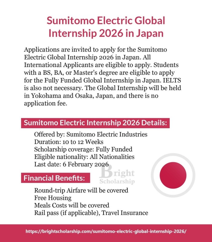 Sumitomo Electric Global Internship 2026 in Japan (Fully Funded)