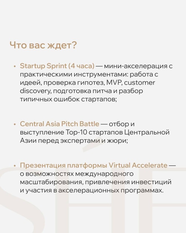 Это пространство для формирования устойчивых, инвестиционно привлекательных стартапов и укрепления связей между локальной и глобальной предпринимательскими экосистемами.