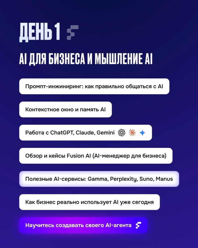 Я подготовил для вас двухдневный интенсив, где «на пальцах» покажу, как я использую нейросети для Fusion AI и жизни. От правильных запросов до создания вирусных видео.