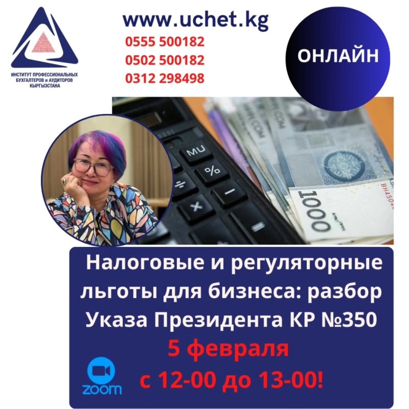 ⚡️Вебинар по последним изменениям в налоговом регулировании, которые вступили в силу 13 января «Налоговые и регуляторные льготы для бизнеса: разбор Указа Президента КР №350»!